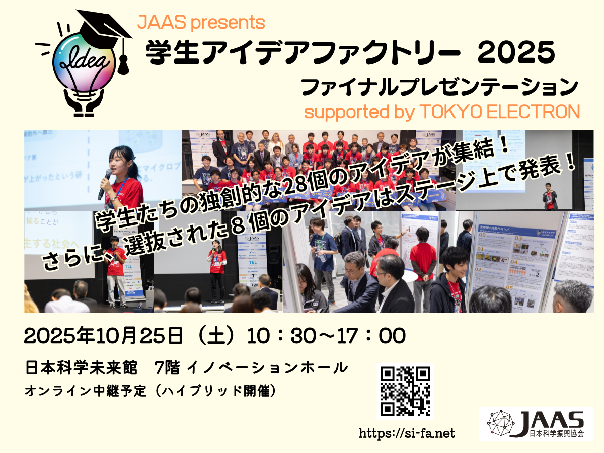 2025年10月25日(土)に東京・日本科学未来館にて、学生アイデアファクトリー2025 ファイナルプレゼンテーションを開催します。